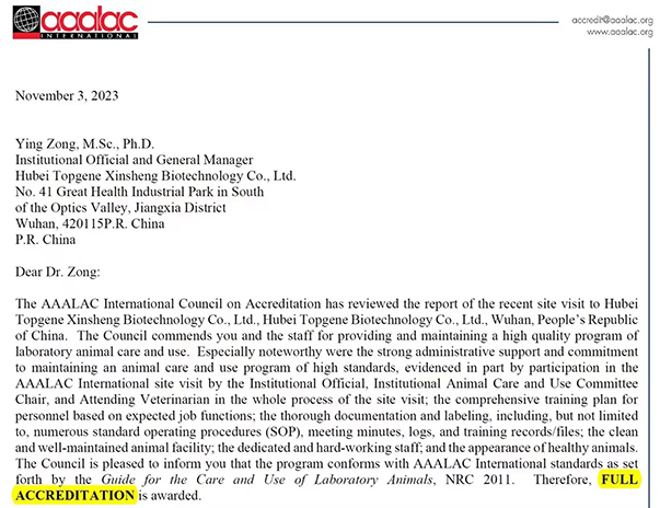 通過國際AAALAC完全認(rèn)證表明天勤鑫圣實驗設(shè)施從硬件到軟件,從動物福利到環(huán)境衛(wèi)生,從監(jiān)督管理到體系建設(shè)均達(dá)到了實驗動物管理和研究活動的國際標(biāo)準(zhǔn)。